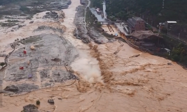 黃河壺口瀑布水量大漲 主副瀑布連成一線